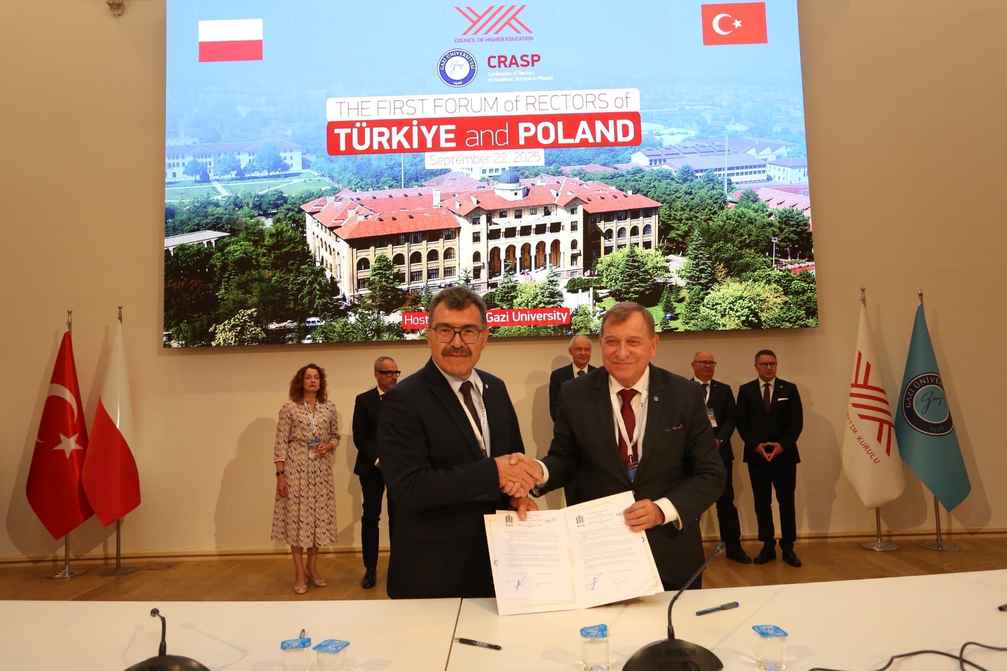 Held on September 22, 2025, and hosted by Gazi University, the First Forum of Rectors of Türkiye and Poland brought together numerous high-level representatives from the academic communities of both countries, under the leadership of the President of the Council of Higher Education (CoHE), Prof. Dr. Erol Özvar, and the Polish Minister of Science and Higher Education, Dr. Marcin Kulasek.